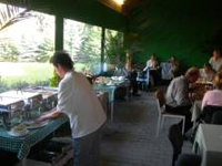 Bei sonnigem, warmen Wetter bieten wir Ihnen bis zu 100 Plätze auf der überdachten Terrasse